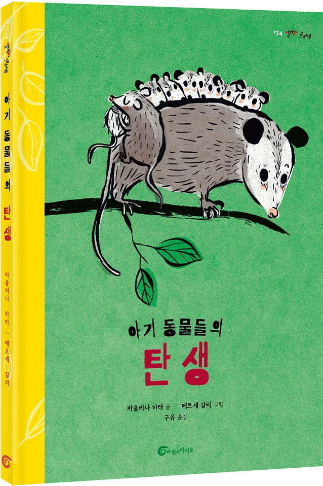 『아기 동물들의 탄생』은 다양한 동물들의 탄생에 얽힌 정보를 담은 그림책이다. 산토끼·퓨마·기린·코끼리·붉은 캥거루 같은 포유류, 닭·뻐꾸기·까마귀 같은 조류, 다윈코개구리와 알프스 도롱뇽 같은 양서류처럼 서로 분류가 다르고 땅·바다·고산지대·극지방 등 각기 다른 터전에서 사는 스물다섯 종의 동물들이 나오는데 이들 사이의 유일한 공통점은 새끼를 낳아 기른다는 점이다. 일곱 팔 문어나 해마처럼 다른 어류에 비해 새끼(알)를 알뜰살뜰 돌보는 종이 포함된 걸 보면 이 책의 초점이 어디에 맞춰져 있는지 분명해 보인다.