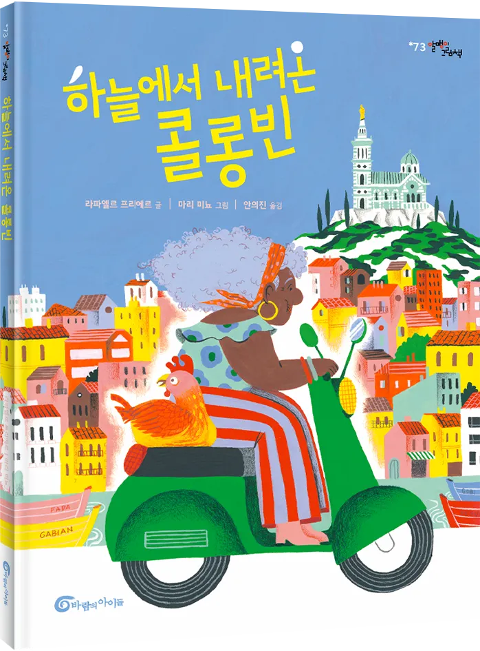 2018년 11월, 프랑스 마르세유의 오바뉴 거리에서 지어진 지 100년도 넘은 낡은 빌딩 두 채가 무너져내렸다. 사망자는 8명. 한 건물은 당국의 안전진단에 의해 일찌감치 출입이 금지되었으나 옆 건물에는 여전히 사람들이 거주하고 있었다. 프랑스 그림책 『하늘에서 내려온 콜롱빈』은 이 일을 기억하기 위해 쓰여진 그림책으로, 오바뉴 거리라는 구체적인 공간을 배경으로 식당을 운영하는 유제니 할머니와 암탉 콜롱빈의 이야기를 들려준다. 방식의 사랑을 이해하고, 속도와 깊이 다른 각자의 사랑을 받아들이는 아이들의 이야기가 펼쳐진다.